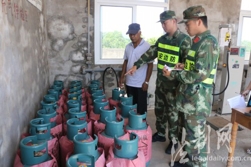 ????這個邊防派出所組織官兵對轄區(qū)船廠、液化氣站等重點部門和單位進行消防安全檢查。檢查中,官兵每到一處都仔細查看值班制度落實、監(jiān)控室、消防安全以及人防、物防、技防等防范情況,對檢查中發(fā)現(xiàn)的隱患能當(dāng)場整改的責(zé)令當(dāng)場整改,同時結(jié)合工作實際對行業(yè)業(yè)主進行法律法規(guī)宣傳。