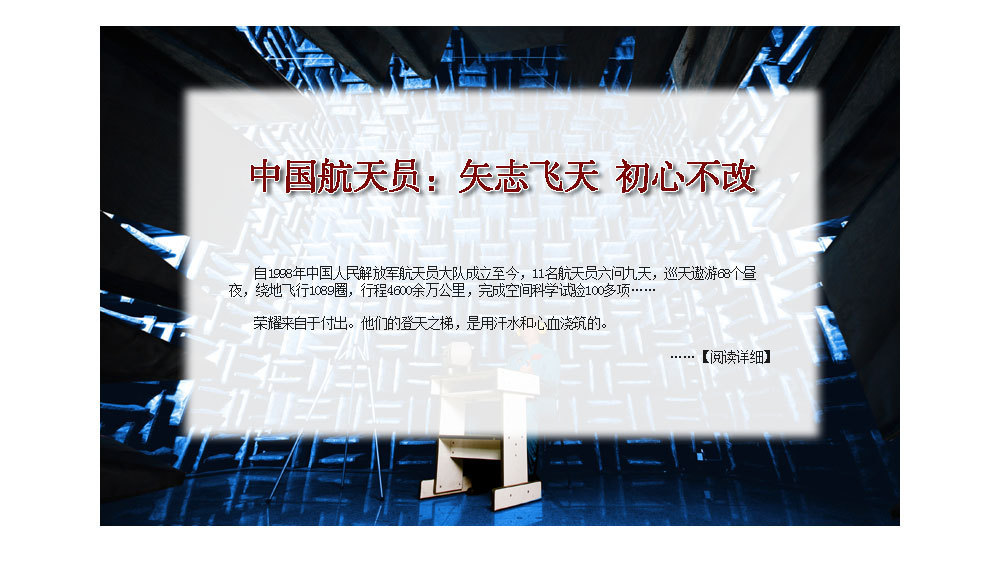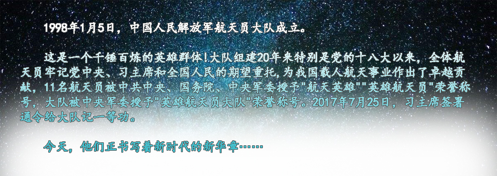 ??? 寧可備而不用,決不用而無備。1998年,我和其他14名戰(zhàn)友一起,懷著對載人航天事業(yè)的無限熱愛和憧憬,義無反顧地投身這一承載著中華民族千年飛天夢想的偉大事業(yè)。我先后入選神十、神十一飛行任務乘組梯隊,但每一次都與飛天失之交臂。直到今天,我和戰(zhàn)友們一樣,還在堅持不懈地開展訓練。因為我知道,無論是否執(zhí)行飛行任務,任務的成功就是我的成功,戰(zhàn)友在天上的表現(xiàn)就是我的表現(xiàn),我愿永遠做筑夢九天的基石,為建設航天強國當好陪練,守望初心,堅守寂寞。?
