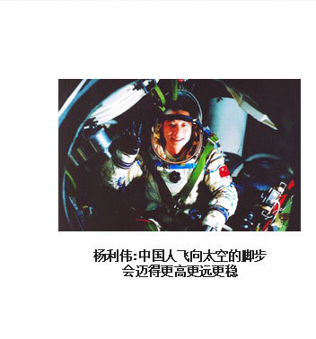 ??? 為了人類的和平與進步,中國人來到了太空。2003年10月15日,我搭乘神舟五號飛船,在太空飛行14圈,歷時21小時23分,完成了中國首次載人航天飛行。雖然是獨自在太空飛行,但一想到億萬祖國人民翹首以待,我覺得不是一個人在飛。于是我拿起太空筆,在工作日志的背面寫上了這樣一句話:“為了人類的和平與進步,中國人來到了太空”,并在艙內鏡頭前向祖國人民、世界人民展示?!盀榱巳祟惖暮推脚c進步”,是中國發(fā)展載人航天事業(yè)的初衷,“中國人來到了太空”既描述了一個歷史時刻,也表達了我為祖國航天事業(yè)感到無比自豪的心情。?
