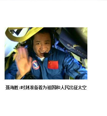 ??? 時刻準備著,將祖國的榮耀一次次寫滿太空。在我加入航天員大隊后,有2件事深深地烙在我的腦海中。一是,一位老華僑在神舟五號任務成功后,含淚而說的“你們航天員飛得有多高,我們海外游子的頭就能昂多高”。二是,我們面對國旗許下的誓言,“為祖國的載人航天事業(yè)奮斗終身”。我始終以嚴慎細實的精神,以時不我待的狀態(tài),腳踏實地、努力學習、刻苦訓練,以實際行動踐行諾言,用一生的執(zhí)著與追求,時刻準備著,將祖國的榮耀一次次寫滿太空!?