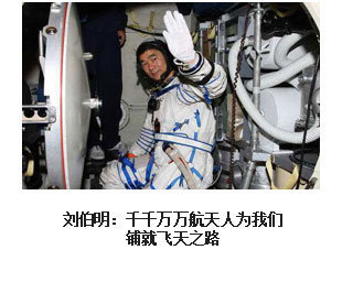 ??? 漫步太空、紅旗永駐。2008年9月27日16時43分,浩渺太空,敞懷相迎,我在戰(zhàn)友伯明、海鵬的協(xié)助和支持下,打開軌道艙艙門,邁出了中國人在茫茫太空中的第一步。在19分35秒的艙外活動中,我隨飛船一起飛過了9165公里,成為中國“飛得最高、走得最快”的人。然而,成功并不代表成熟,一切仍要從零開始。后續(xù)的空間站任務、登陸月球……路還很長,挑戰(zhàn)還很多,需要付出和努力的也還很多。對于我來說,沒有停歇的腳步,只有奮進的號角。