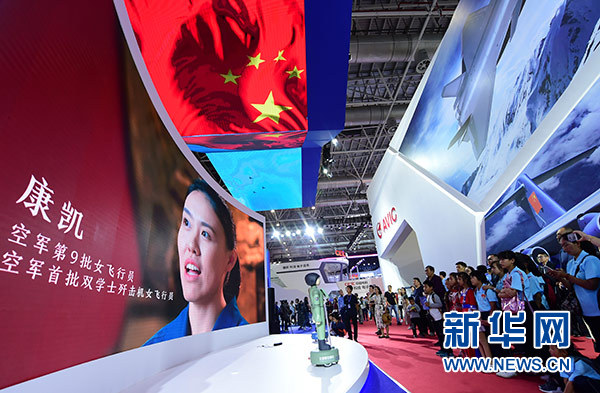 藍(lán)天春蕾女童在航展現(xiàn)場參觀(11月10日攝)。 新華社發(fā)(陳藝 攝)