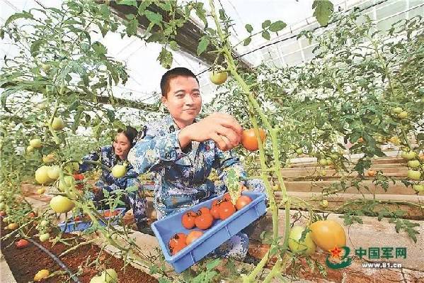 ????西沙永興島駐守士兵正在蔬菜大棚采摘蔬菜。趙杰 攝