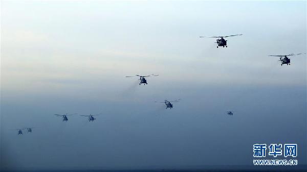 ????陸軍第79集團(tuán)軍某陸航旅在復(fù)雜條件下組織大集群編隊演練,提高實戰(zhàn)化水平(2018年1月5日攝)。 新華社發(fā)(李寧 攝)
