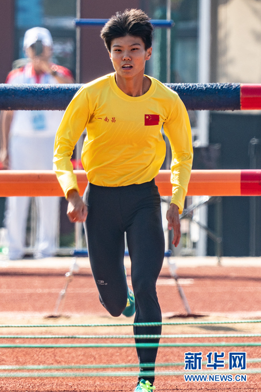 10月20日,中國隊選手盧嬪嬪在比賽中。 當日,在武漢舉行的第七屆世界軍人運動會軍事五項女子個人全能障礙跑項目中,中國隊選手盧嬪嬪以2分10秒09的成績打破該項目世界紀錄,排名第一。 新華社記者劉金海攝