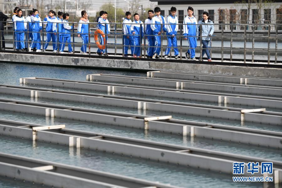3月21日,水廠(chǎng)工作人員向?qū)W生介紹自來(lái)水生產(chǎn)流程。