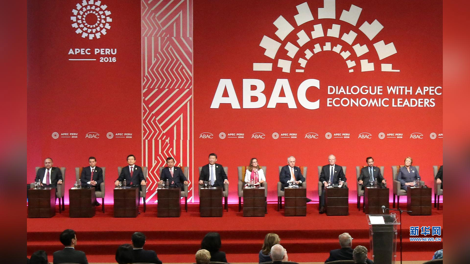 11月19日,2016年亞太經合組織工商領導人峰會在秘魯利馬舉行。國家主席習近平應邀出席并發(fā)表題為《深化伙伴關系 增強發(fā)展動力》的主旨演講。 新華社記者 蘭紅光 攝2016-11-20