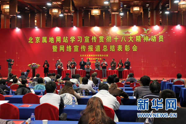 ??? 新華網(wǎng)北京11月28日電(記者 陳元)27日,北京市互聯(lián)網(wǎng)宣傳管理辦公室召開(kāi)北京屬地網(wǎng)站學(xué)習(xí)宣傳貫徹黨的十八大精神動(dòng)員大會(huì)暨網(wǎng)絡(luò)宣傳報(bào)道總結(jié)表彰會(huì)。