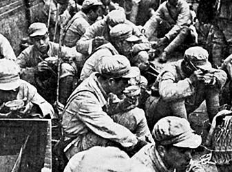 當(dāng)時(shí)明文規(guī)定:進(jìn)入市區(qū)的,只限指揮機(jī)關(guān)和戰(zhàn)斗部隊(duì),后方輜重、騾馬一律不得進(jìn)入市區(qū)。這樣,炊事員在郊外燒好了飯,甚至要走上二三十里路,才能送到戰(zhàn)士手里。路途遠(yuǎn),加上天下雨,有時(shí)一天只能走一個(gè)來回,戰(zhàn)士也就只能一天吃一餐。