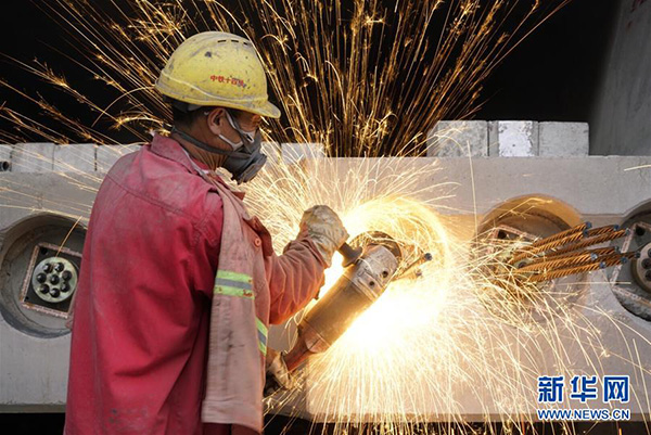 中鐵十四局集團(tuán)的工人在魯南高鐵山東臨沂段施工(11月2日攝)。新華社記者 邢廣利 攝