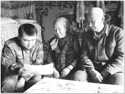“尋親”的線索就這樣斷了。正當大家一籌莫展時,官兵們從另外一個村打聽、找到了恰依肯老人的外孫,這才得知,恰依肯夫婦早在10年前就搬到了鐵熱克提鄉(xiāng)阿克哈巴南村生活。