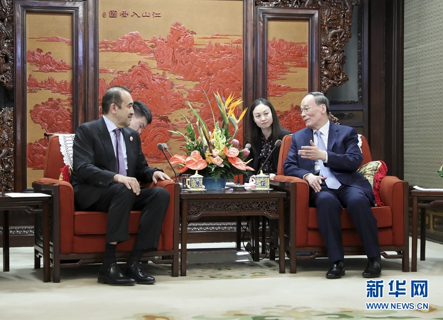 新華社北京4月8日電(記者伍岳)國家副主席王岐山8日在中南海紫光閣會見哈薩克斯坦國家安全委員會主席馬西莫夫。