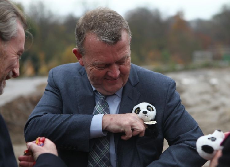 2017年11月16日,在丹麥?zhǔn)锥几绫竟?,丹麥?zhǔn)紫嗬鼓律鱿绫竟鶆游飯@熊貓館奠基儀式。(新華社記者 石壽河 攝)