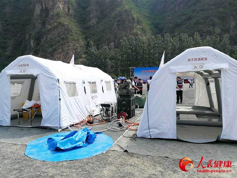 6月10日至13日,2019年國家衛(wèi)生應(yīng)急演練暨京津冀聯(lián)合演練在河北淶水縣舉行。演練以某地山區(qū)突降暴雨,引發(fā)嚴(yán)重洪澇和泥石流災(zāi)害,導(dǎo)致大量人員傷亡和醫(yī)療衛(wèi)生機(jī)構(gòu)受損為背景,系統(tǒng)演練了國家、省、市、縣四級迅速啟動衛(wèi)生應(yīng)急響應(yīng)措施,組織開展重特大自然災(zāi)害醫(yī)學(xué)救援,成功救治受傷人員、防控災(zāi)后傳染病疫情和應(yīng)對災(zāi)害次生?;沸孤┦鹿?。