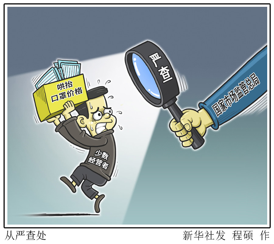 據(jù)介紹,1月25日,市場監(jiān)管總局發(fā)布公告,要求各級市場監(jiān)管部門依法從嚴(yán)從重從快打擊少數(shù)經(jīng)營者串通漲價、哄抬價格、價格欺詐等違法行為,堅決維護(hù)防疫用品市場價格秩序。公告下發(fā)后,全國各級市場監(jiān)管部門迅速出擊,嚴(yán)肅查處少數(shù)“發(fā)疫情財”的違法經(jīng)營者。