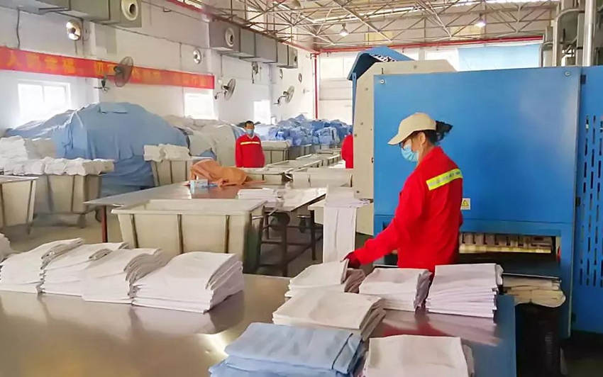 一套臥具要經(jīng)過11道洗滌消毒工序,過程中設(shè)備會(huì)自動(dòng)加熱,溫度逐步加熱至80攝氏度,在這樣的恒定高溫下要足足轉(zhuǎn)洗約50分鐘。