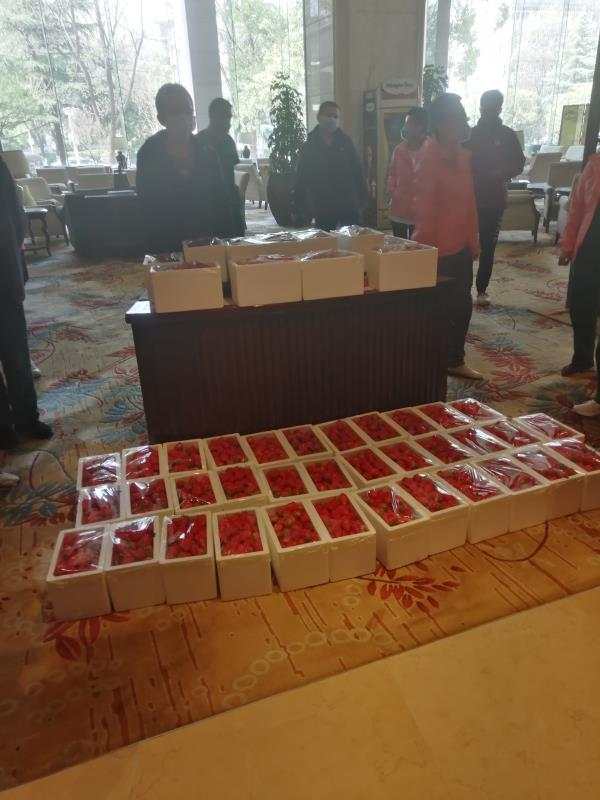 據(jù)前來送草莓的康復患者稱,這些草莓是江岸方艙醫(yī)院64名病友花費了1.6萬元購買送給河北的醫(yī)護人員。為了保證草莓的新鮮,武漢當?shù)剞r(nóng)民從凌晨3點就開始采摘。“這是我們的一點心意,如果不是你們的幫助,單靠武漢的醫(yī)務人員確實是挺不住的,很感謝你們從全國各地來幫助我們,這次疫情來的很突然,我的母親也因病毒感染去世。小家的母親走了,但是你們卻拯救了武漢這個大家。非常感謝你們。希望大家把這點心意和問候帶回河北,同時也希望大家一路平安,感謝你們對我們武漢的很大幫助。謝謝大家!”