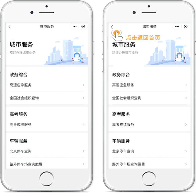 城市服務還會根據(jù)定位城市,為你智能化推薦當?shù)氐膶嵱霉δ?,如停車查詢、汽車售票、舉報中心等服務,讓你的出行更省心。(如定位有誤可在首頁左上角進行切換。)