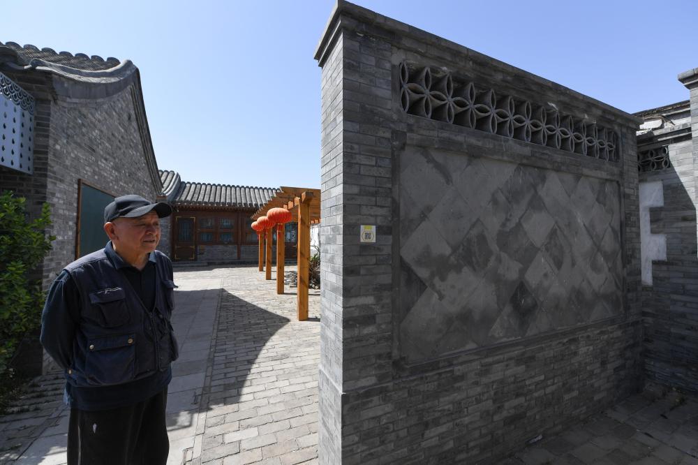 69歲的居民崇寶才在修繕一新的北京市東城區(qū)雨兒胡同30號院內(nèi)(5月13日攝)。新華社記者 鞠煥宗 攝