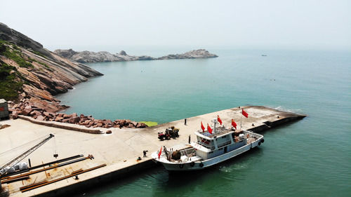 7月16日,“擁軍船”在蘇山島??浚o人機照片)。新華社記者 王凱 攝