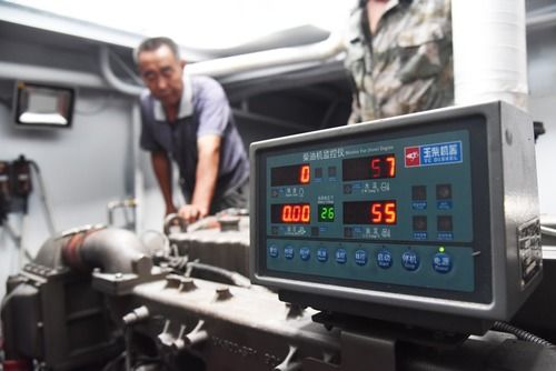 7月16日,“泰叔”錢均堂在檢查“擁軍船”內(nèi)部的機械安全情況。新華社記者 王凱 攝