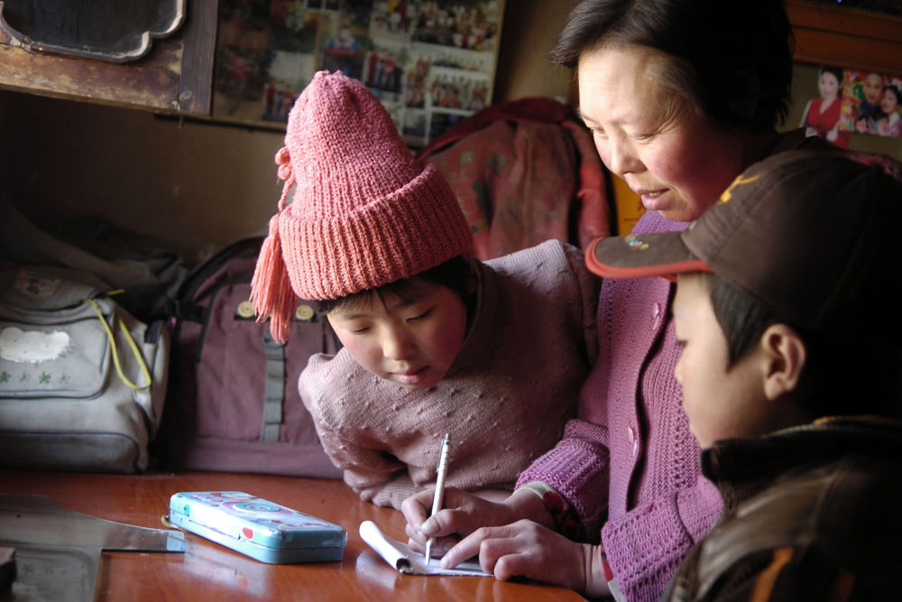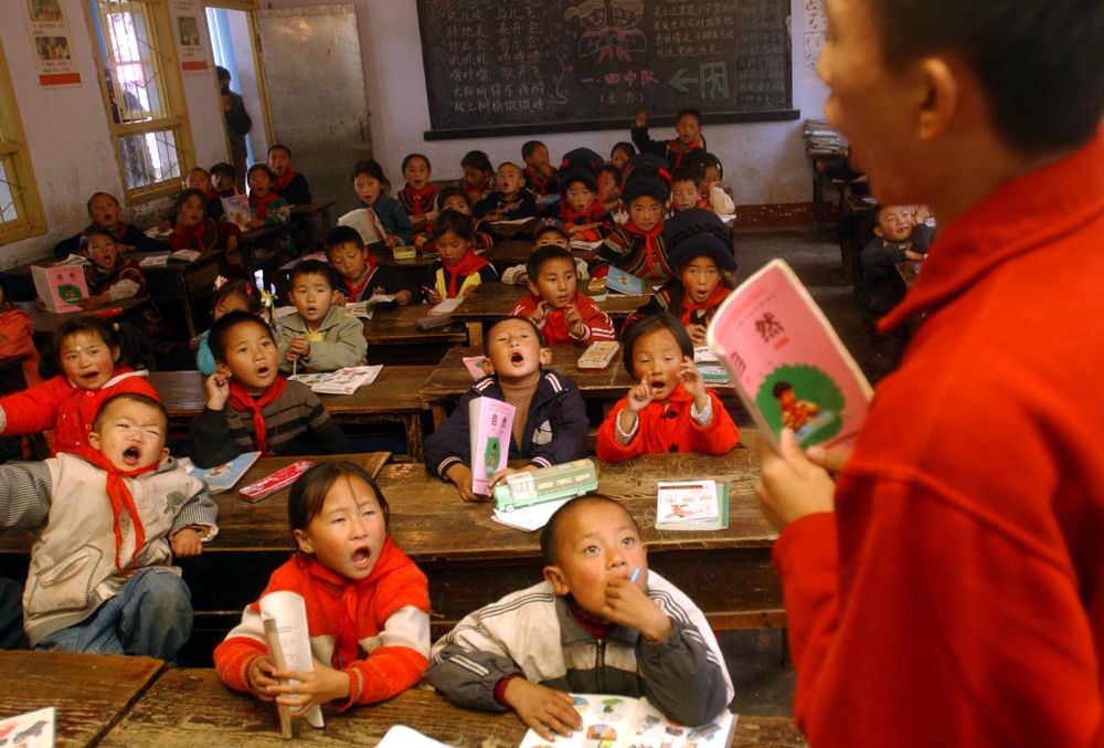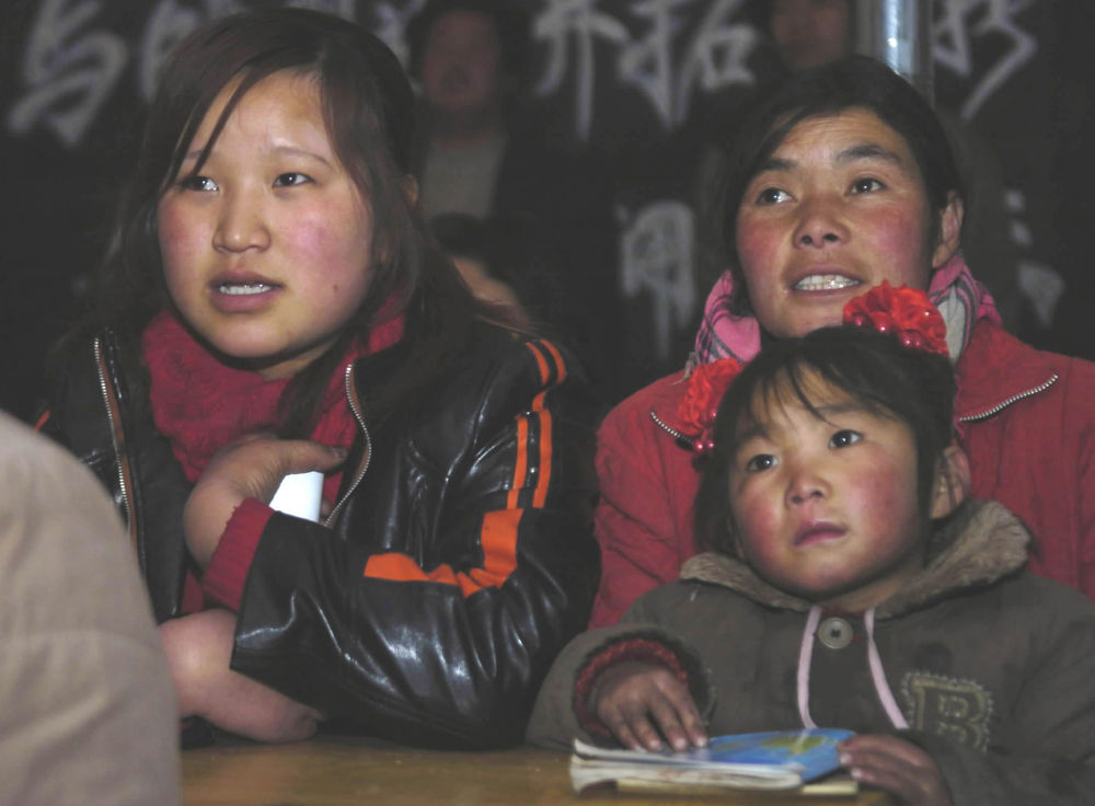 ↑ 2006年1月13日,“掃盲夜?!睂W(xué)員在甘肅漳縣三岔鎮(zhèn)中心小學(xué)上課。