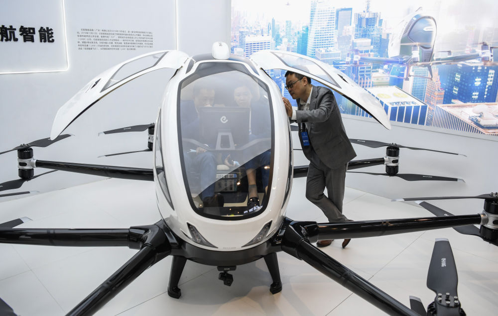 11月19日至21日,2020中國5G+工業(yè)互聯(lián)網(wǎng)大會在位于武漢的中國光谷科技會展中心舉行,大會特色活動“5G+工業(yè)互聯(lián)網(wǎng)成果展”同步舉行。圖為11月19日,參觀者了解一臺自動駕駛飛行器。新華社記者 程敏 攝