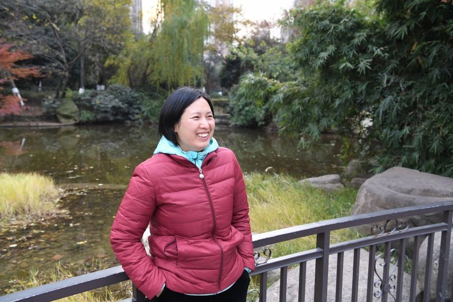 12月17日,周國紅在小區(qū)里休息。