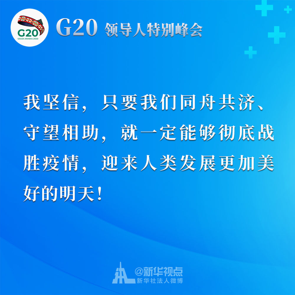 習近平在二十國集團領(lǐng)導人應對新冠肺炎特別峰會上重要講話金句↓