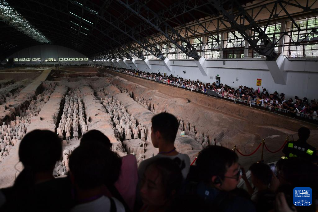 暑期将尽,但位于陕西西安临潼区的秦始皇兵马俑博物馆旅游热度不减,前来参观的游客摩肩接踵。