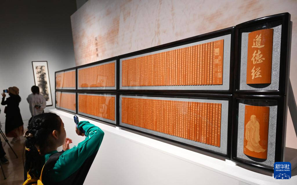 10月14日,观众参观徐秉方父女历时三年刻成的留青竹刻竹简作品《道德经》。