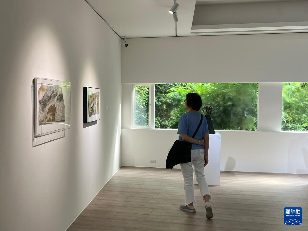 4月22日,参观者在台南大新美术馆观看“‘共南风’大新两岸双城青年艺术交流展”。新华社记者 齐菲 摄
