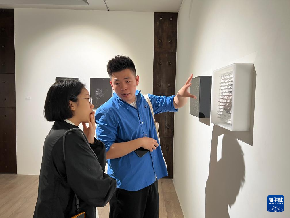 4月22日,青年艺术家在台南大新美术馆举行的“‘共南风’大新两岸双城青年艺术交流展”上交流。新华社记者 齐菲 摄