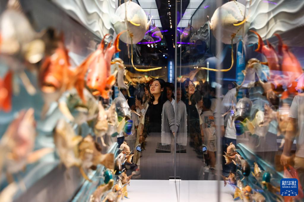 5月18日,观众在位于天津的国家海洋博物馆展厅里参观。