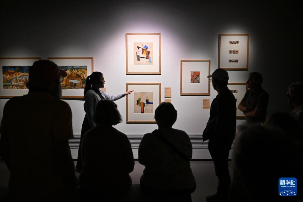 4月9日,在乌兹别克斯坦努库斯,讲解员在萨维茨基国家艺术博物馆为观众介绍展品。