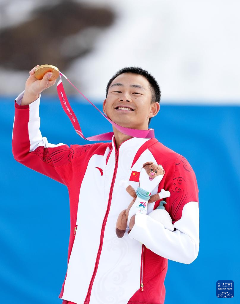 当地时间3月13日,在意大利泰塞罗举行的米兰-科尔蒂纳冬残奥会冬季两项男子短距离追逐(站姿)比赛中,中国选手蔡佳云夺得冠军。