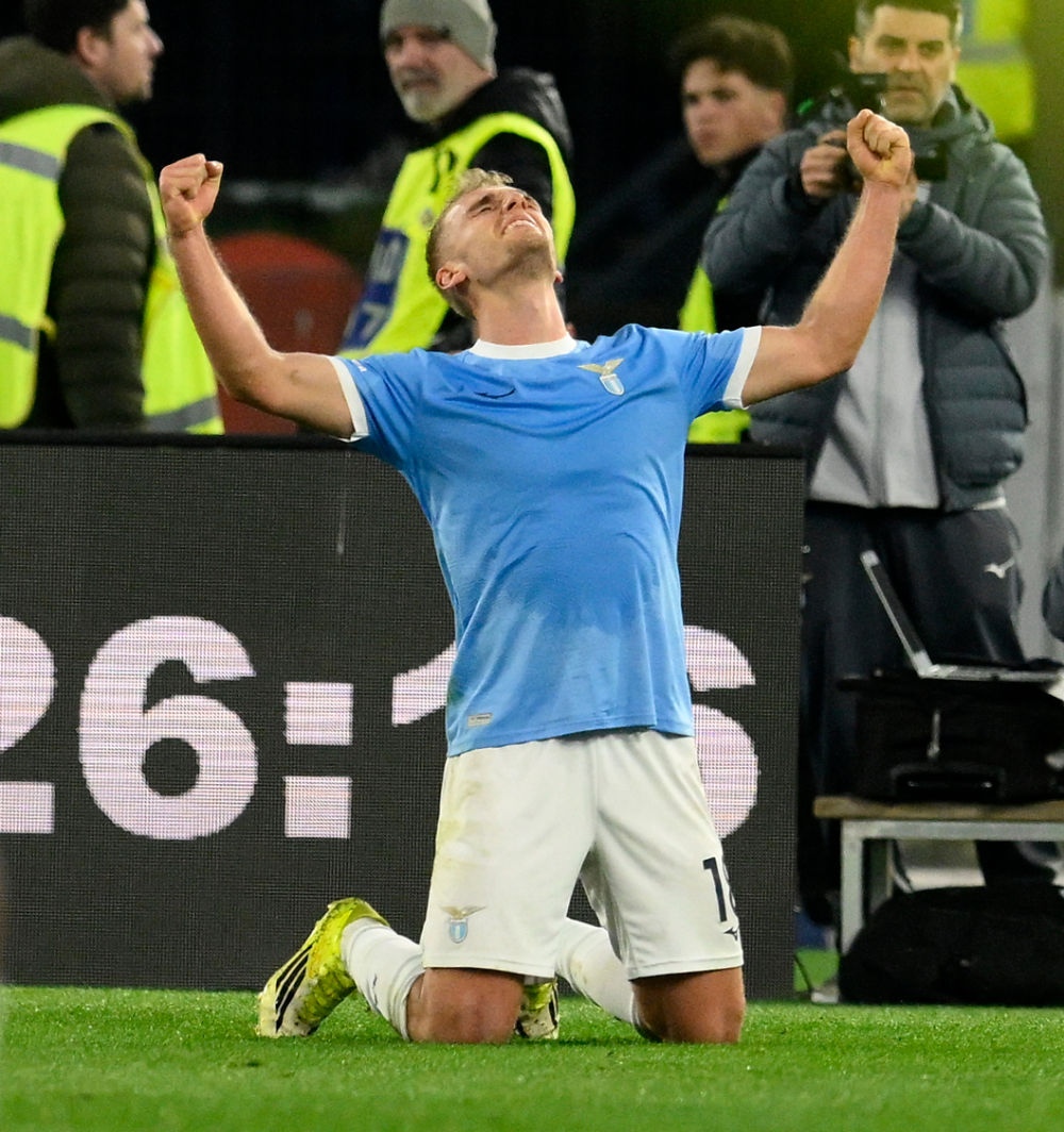 3月15日,拉齐奥队球员伊萨克森庆祝进球。新华社发(阿尔贝托·林格利亚摄)