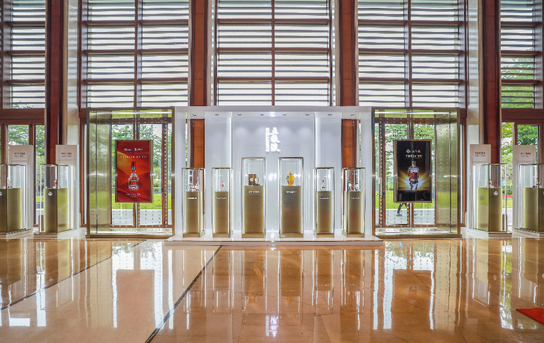 圖為五糧液核心產(chǎn)品盛裝亮相博鰲亞洲論壇2021年年會(huì)