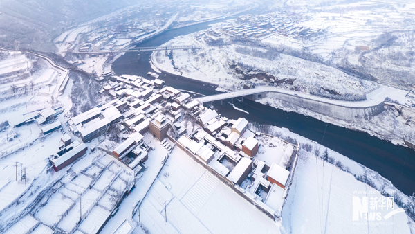 俯瞰暴雪過后的娘子關(guān)全景。古城堡依山傍水,居高臨下,關(guān)門兩座,護佑四方。楊東/攝