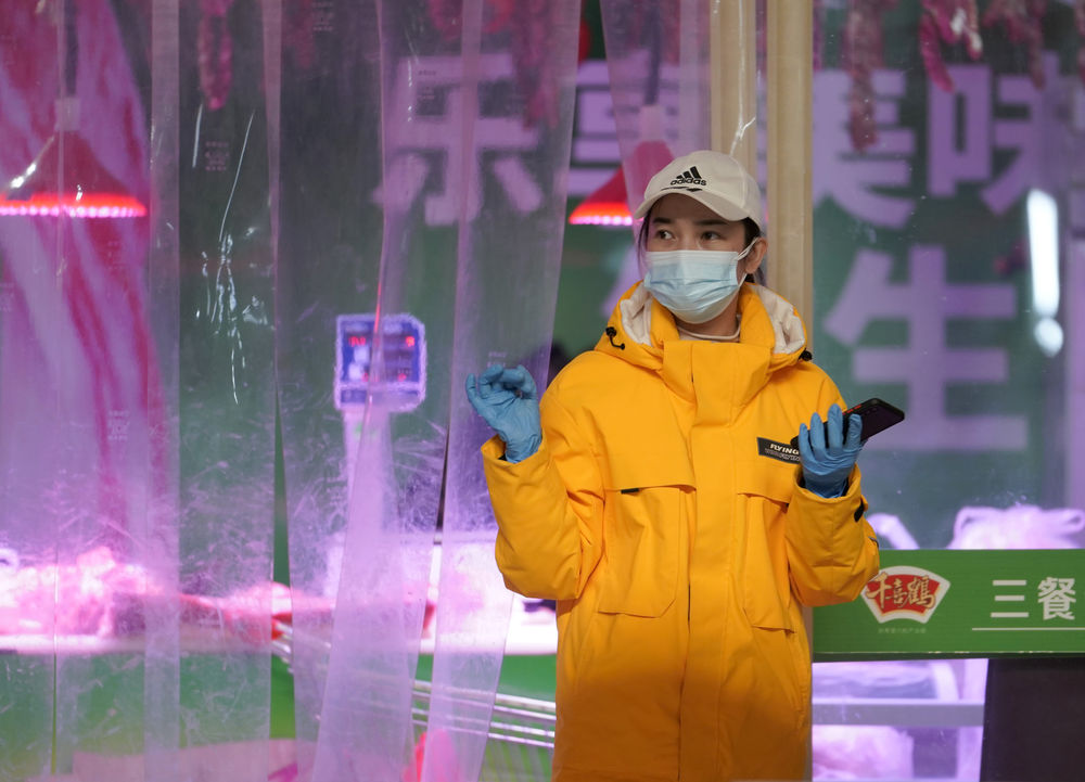 ↑1月11日,張琪琪在菜市場(chǎng)給鄰居們采購食物。