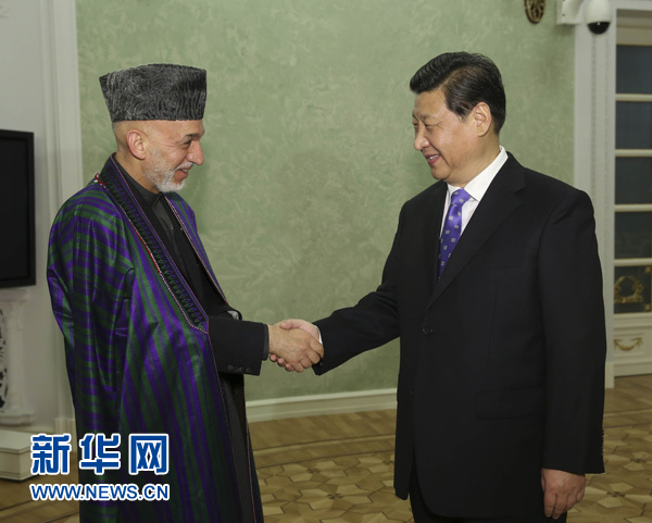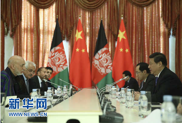 ????習(xí)近平指出,2014年之后,阿富汗的命運(yùn)將更加緊密地同地區(qū)國家聯(lián)系在一起。中方支持阿富汗融入地區(qū)經(jīng)濟(jì)合作。中方將于8月舉辦阿富汗問題伊斯坦布爾進(jìn)程第四次外長會,我們愿同阿方密切合作,辦好這次會議。中方也愿推動(dòng)上海合作組織在阿富汗問題上發(fā)揮更大作用。