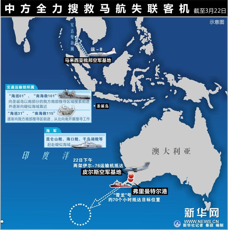 圖表:中方全力搜救馬航失聯(lián)客機