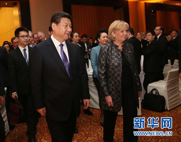 ??? 3月29日,國家主席習近平在杜塞爾多夫出席中德工商界舉行的招待會并發(fā)表題為《把握中國機遇,實現(xiàn)共同發(fā)展》的重要講話。這是習近平等步入招待會會場。新華社記者劉衛(wèi)兵攝