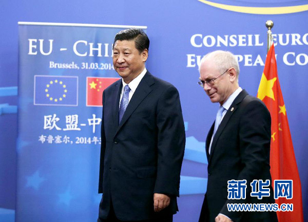 ????3月31日,國家主席習(xí)近平在比利時(shí)布魯塞爾同歐洲理事會主席范龍佩舉行會談。 新華社記者 鞠鵬 攝