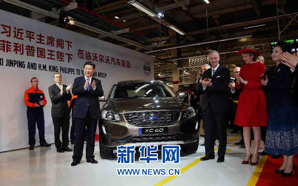 ??? 4月1日,國家主席習近平在比利時國王菲利普陪同下參觀沃爾沃汽車公司根特工廠。 新華社記者姚大偉攝