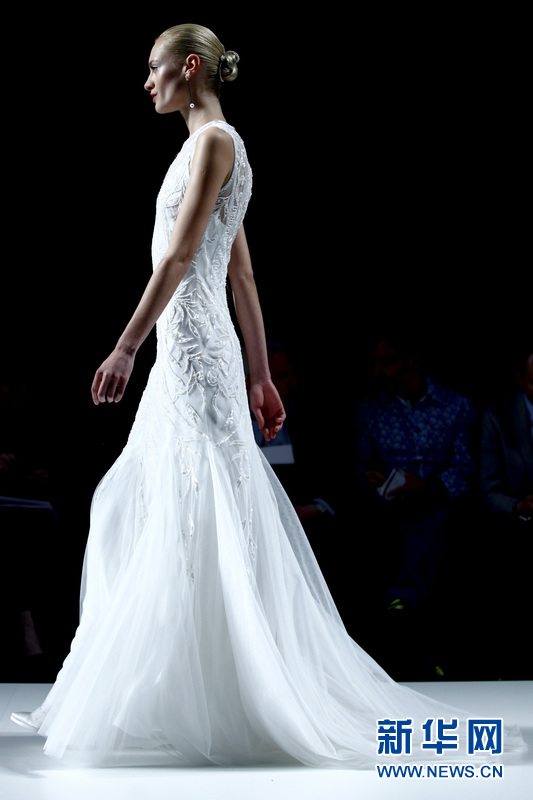 特在T臺上展示西班牙女服裝設(shè)計師Rosa Clara的婚紗作品。Rosa Clara同時也是來自巴塞羅那當(dāng)?shù)氐囊粋€婚紗品牌。