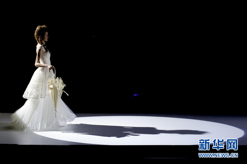 模特在T臺(tái)上展示西班牙女服裝設(shè)計(jì)師 Inmaculada Garcia的婚紗作品。Inmaculada Garcia同時(shí)也是來(lái)自巴塞羅那當(dāng)?shù)氐囊粋€(gè)婚紗品牌。