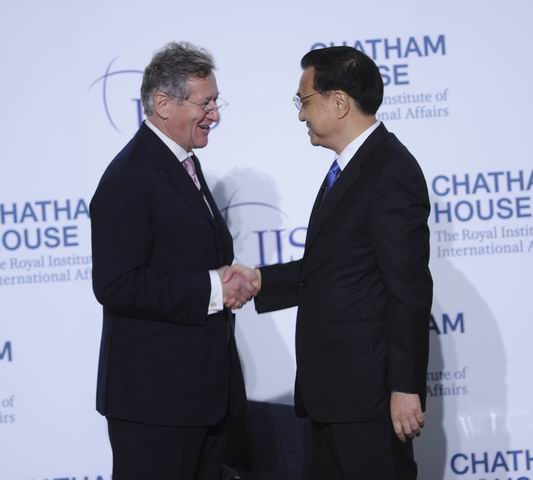 ??? 【英兩家頂級智庫搭臺 傾聽中國總理聲音】18日,李克強在擁有悠久歷史、金碧輝煌的倫敦金融城市長官邸,面向300多位智庫成員發(fā)表了題為《共建包容發(fā)展的美好世界》的演講。皇家國際事務研究所和國際戰(zhàn)略研究所同為全球頂級智庫。此間輿論認為,由兩家研究所共同舉辦同一場演講極為罕見。