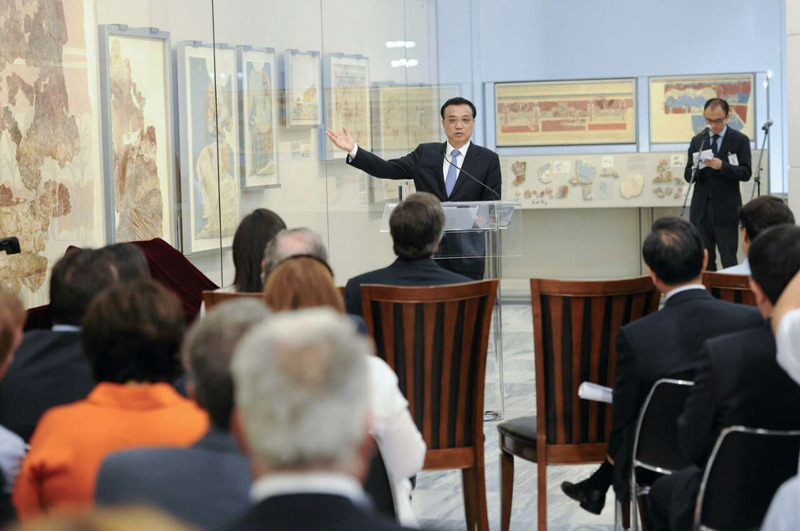??? 【李克強(qiáng)引中希先哲名言談兩國(guó)合作】李克強(qiáng)21日在伊拉克利翁博物館新館開館儀式上談到中希合作潛力時(shí),引用古希臘哲學(xué)家赫拉克利特名言:“人不能兩次踏進(jìn)同一條河流”與中國(guó)思想家孔子名言:“逝者如斯夫,不舍晝夜”。李克強(qiáng)說(shuō),中希合作機(jī)不可失、時(shí)不我待,期待兩國(guó)深挖潛力,合作之路越走越寬。