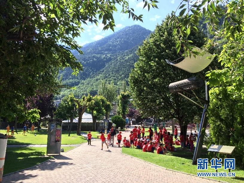 ????一群學(xué)生在安道爾城的一個公園里進行活動。(周喆 攝)